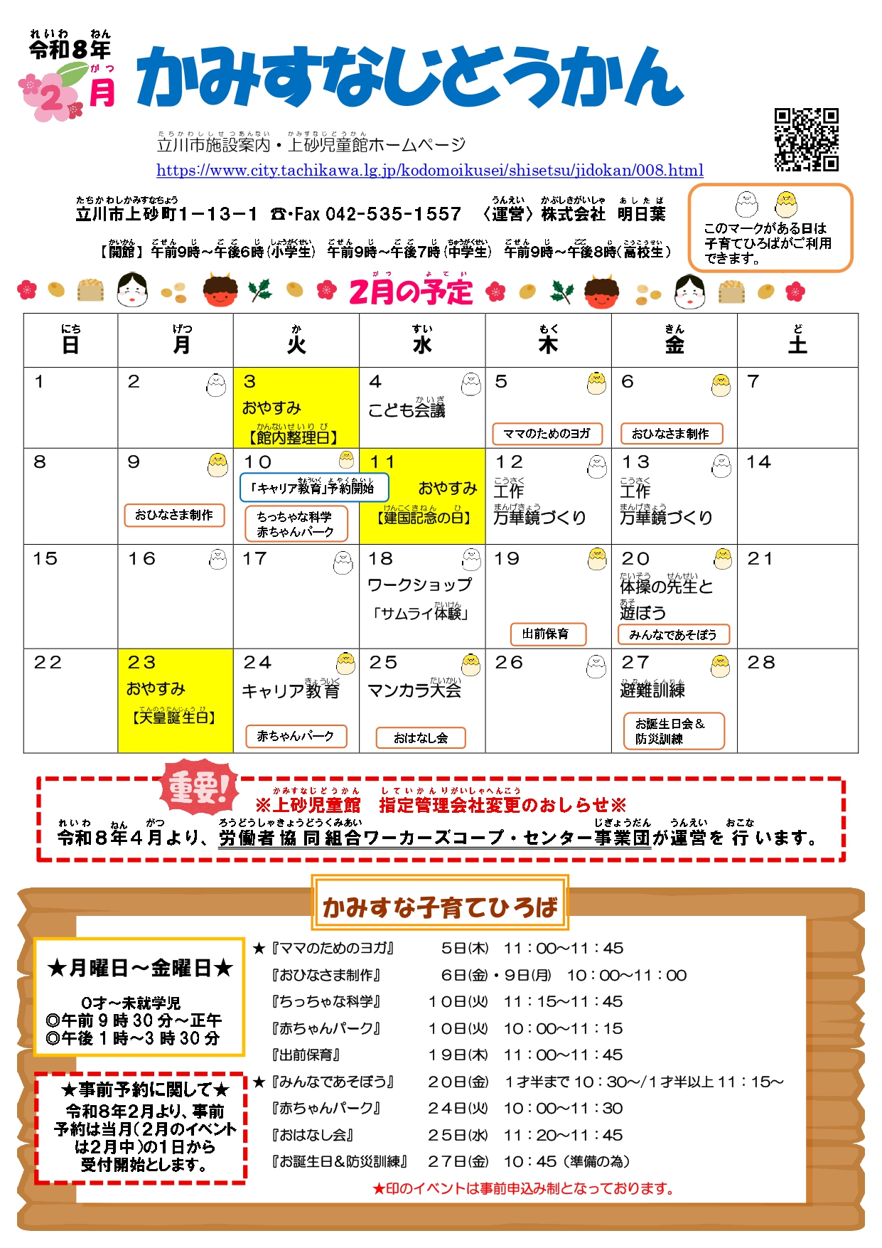 【上砂児童館】おたより(2026年2月号)